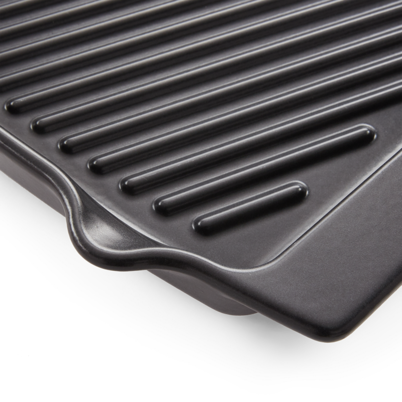 Ceramiczna forma świetnie sprawdza się przy delikatnych potrawach które mogłyby wpaść pomiędzy ruszt. Na potrawach zyskujemy wzór dzięki teksturze na dnie formy.