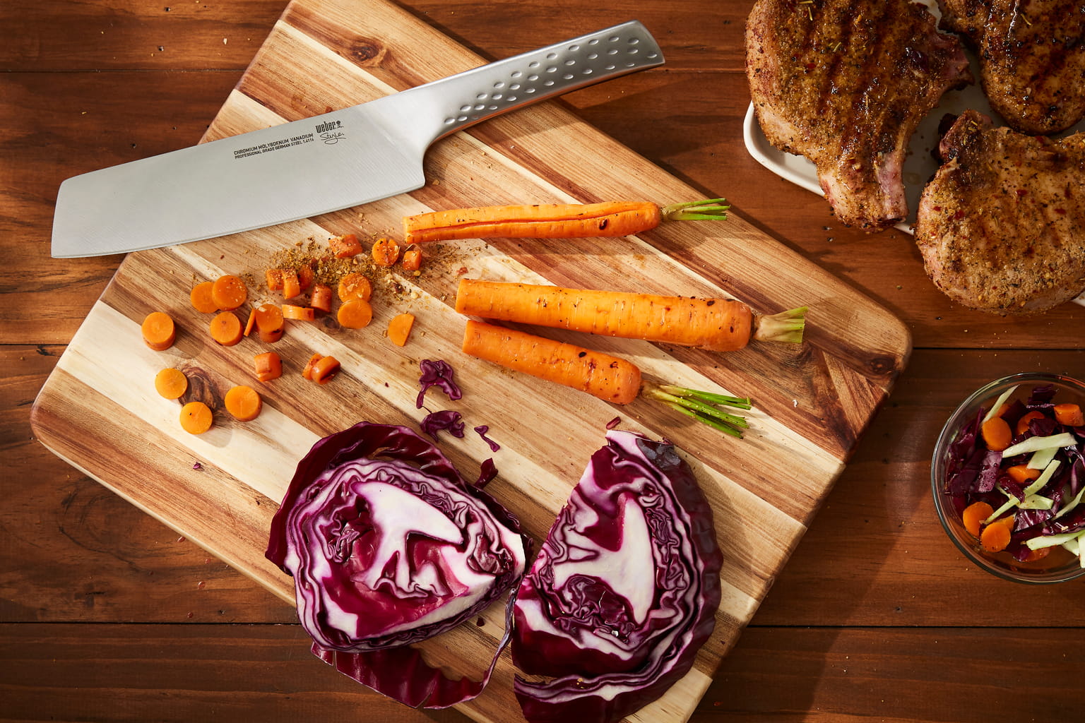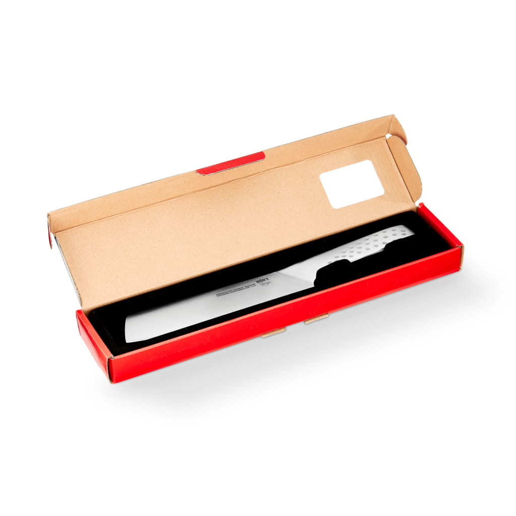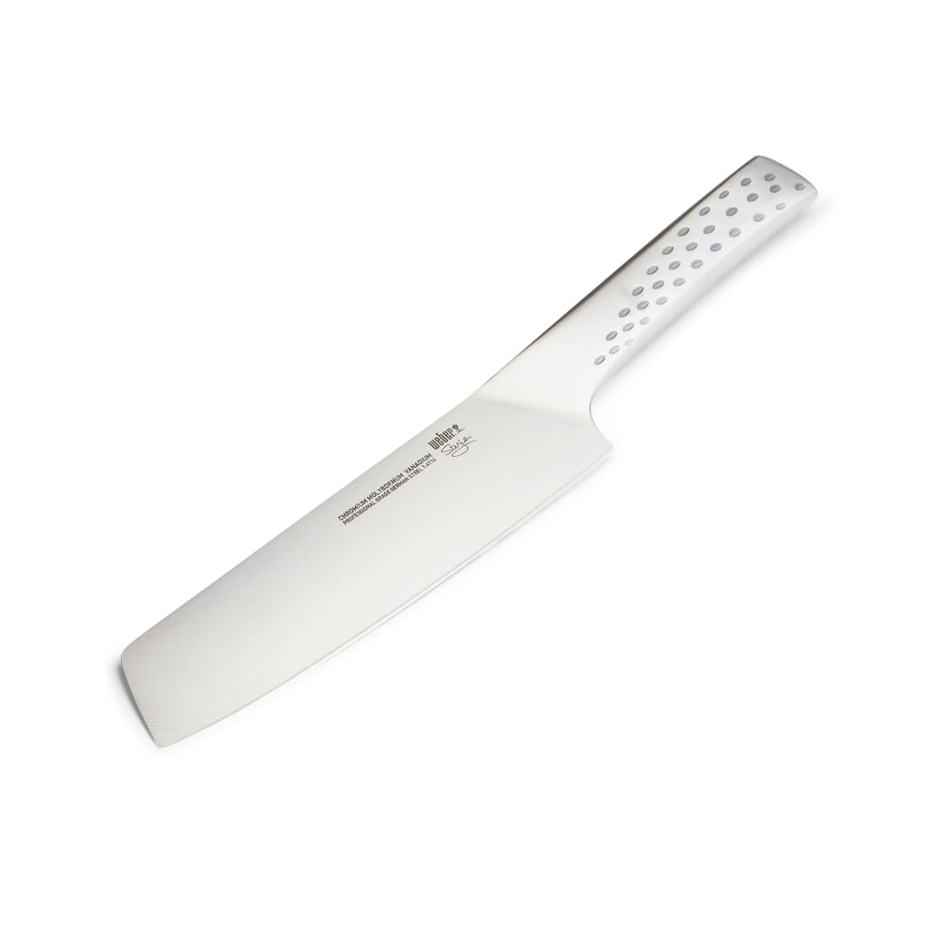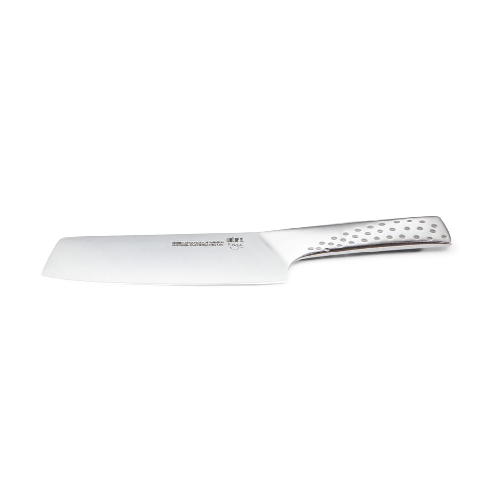 Duży nóż do warzyw Deluxe marki Weber wykonany jest z wysokiej jakości stali nierdzewnej. Posiada elegancki wygląd i jest niezastąpiony w każdej kuchni. Praktyczny, ergonomiczny uchwyt zapewnia wygodę i bezpieczeństwo podczas użytkowania.
