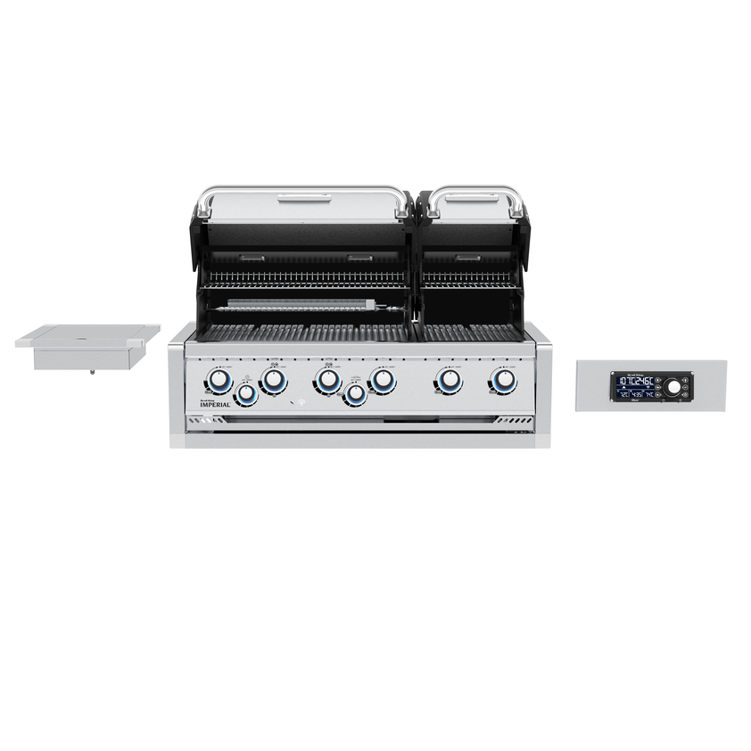 Grill gazowy Imperial QS 690 BI do zabudowy to rewolucja w świecie grillowania. Grill ten stanowi idealne połączenie luksusu, wydajności i wygody z nowoczesnością za sprawą technologii iQue i umożliwia stworzenie unikalnej, dopasowanej do Twoich potrzeb kuchni w ogrodzie. Posiada dwa niezależne piekarniki oraz kuchenkę boczną. Wyposażony został ponadto w zaawansowane rozwiązania Broil King: dwustronny ruszt Flav-R-Cast z odlewu stali szlachetnej, aromatyzery Flav-R-Wave oraz oświetlenie wewnątrz piekarników. Intuicyjny panel sterowania iQue mieści elektroniczny termometr Accu-Temp oraz pokrętło do kontroli grilla. Połączenie z aplikacją Broil King iQue umożliwia sterowanie palnikami Dual-Tube oraz palnikiem rożna za pomocą telefonu. Grill wyposażony został w pokrętła Sensi-Touch z podświetleniem w kolorystyce z palety barw RGB.