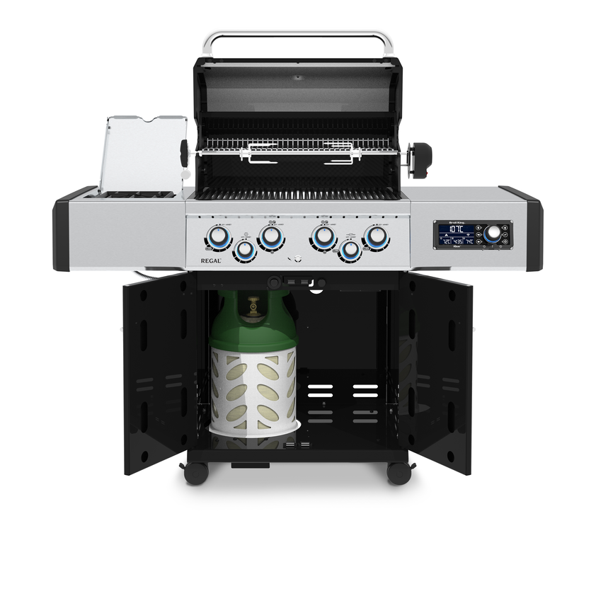 Grill gazowy Regal Q 490 to połączenie elegancji z nowoczesnością za sprawą technologii iQue, która wprowadza nową jakość w świecie grillowania. Grill wyposażony został w zaawansowane rozwiązania Broil King: dwustronny ruszt Flav-R-Cast z odlewu z żeliwa Dura-Cast, aromatyzery Flav-R-Wave oraz oświetlenie wewnątrz piekarnika. Posiada również pokrętła Sensi-Touch z podświetleniem w kolorystyce palety barw RGB. Zarówno sterowanie jak i kontrolę grilla możemy wykonywać poprzez zdalną aplikację lub manualnie.
