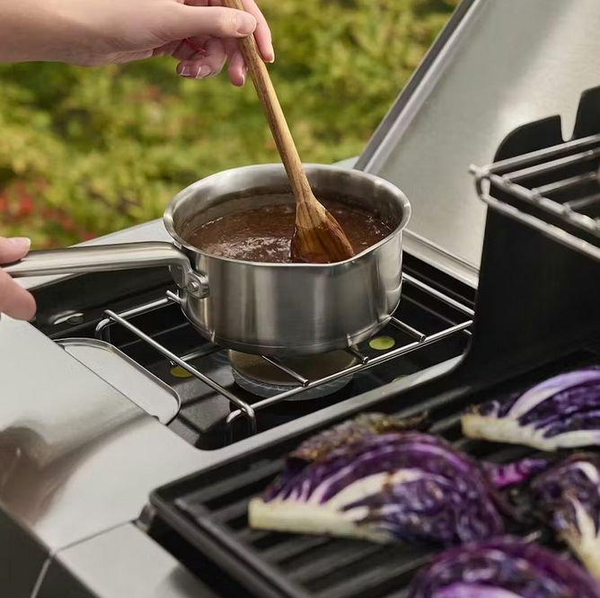 Wszechstronność tego modelu podkreśla funkcjonalny palnik boczny o mocy 3,52 kW. Palnik działa jak praktyczna kuchenka gazowa, na której przygotujesz sosy, zupy, marynaty, a nawet podsmażysz dodatki bez odchodzenia od grilla! To ogromne udogodnienie, dzięki któremu cała kulinarna praca toczy się w jednym miejscu, a Ty oszczędzasz czas i energię na bieganie do domowej kuchni w trakcie grillowania.