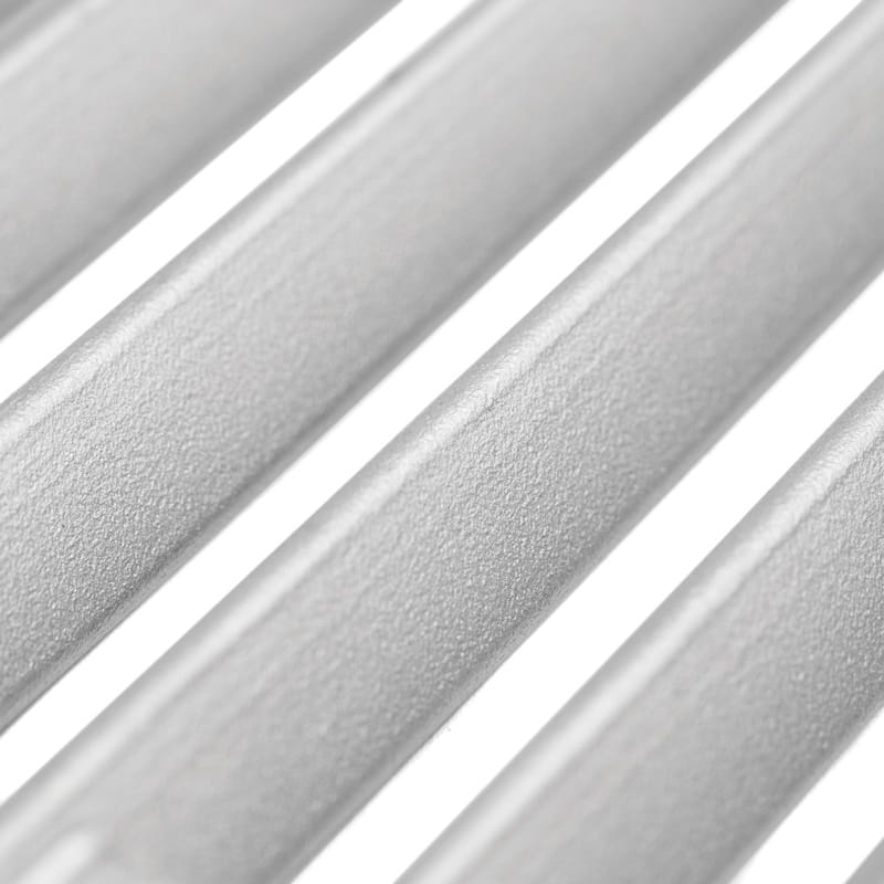 - Górny ruszt z prętów ze stali szlachetnej ze ścianką z tyłu o rozmiarach 77 × 20 cm.