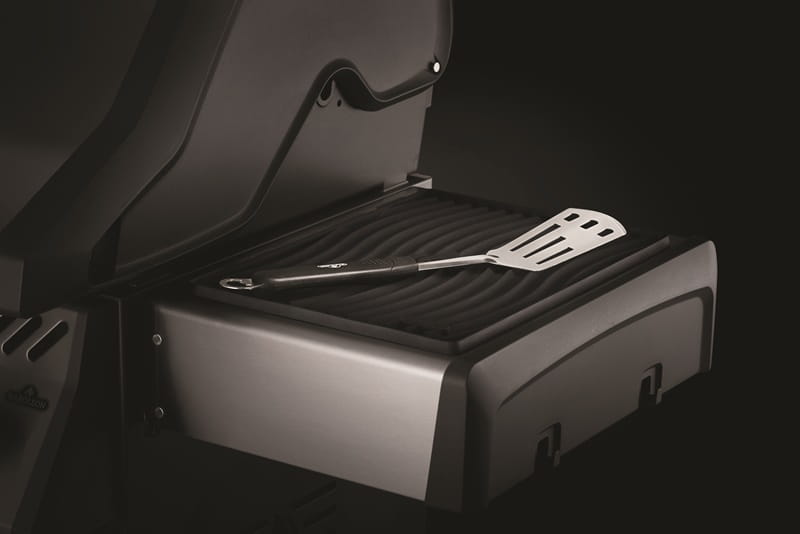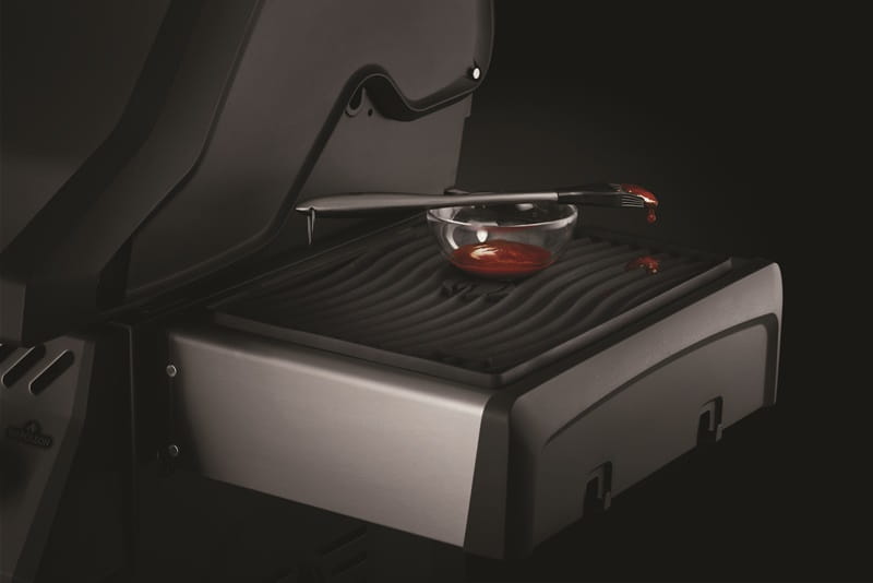 Silikonowa mata ochronna na półkę bocznąmarki Napoleon jest odporna na ciepło. Przygotuj potrawy, odłóż szczypce lub szczotkę nie pozostawiając zarysowań a po wszystkim łatwo zdejmij i umyj matę.