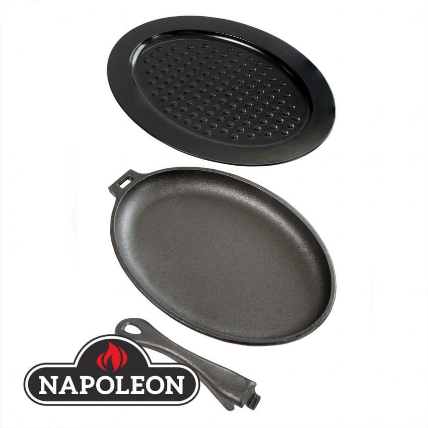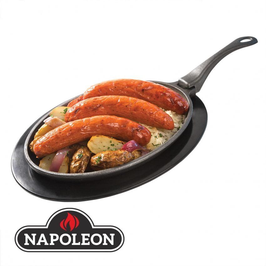 Patelnia żeliwna z wyjmowaną rączką Napoleon to idealna mała patelnia dla początkujących użytkowników żeliwa. Używaj profesjonalnej patelni żeliwnej bezpośrednio na rusztach do grillowania, na bocznym palniku lub nawet na kuchence. Zdejmowany uchwyt pozostaje chłodny podczas grillowania. Można go w łatwy sposób założyć lub zdjąć, co umożliwia szybkie przenoszenie i wyjmowanie potraw.