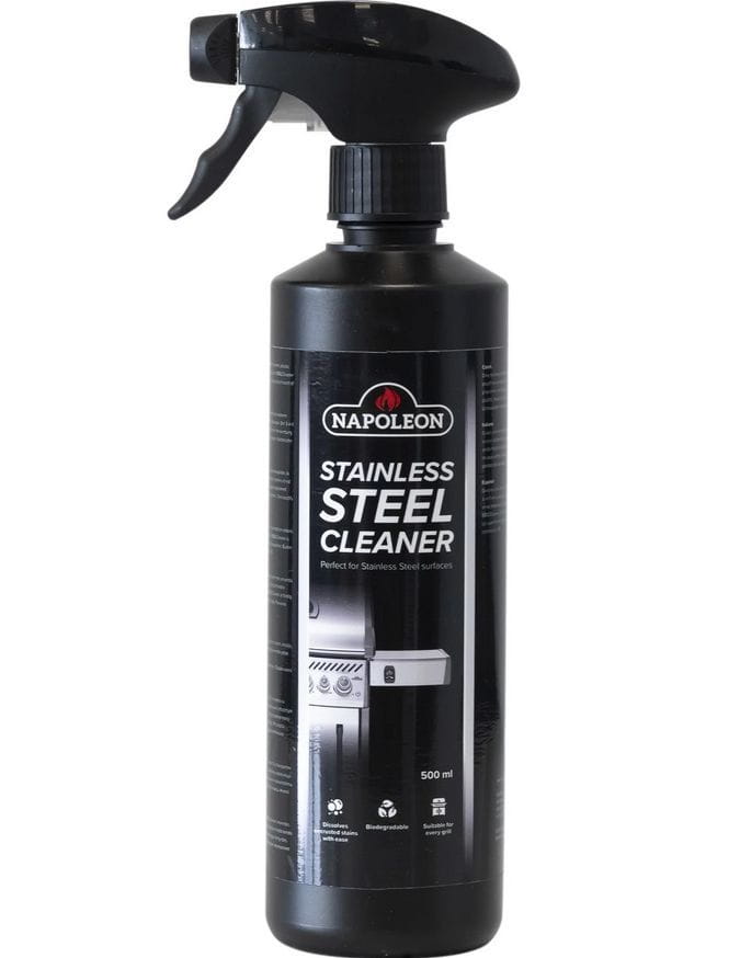 Płyn do czyszczenia stali szlachetnej firmy Napoleon nadaje grillowi połysk. Środek znajduje się w praktycznej butelce ze sprayem i czyści wszystkie zewnętrzne powierzchnie ze stali nierdzewnej. Dzięki niemu powierzchnia jest chroniona i błyszcząca.