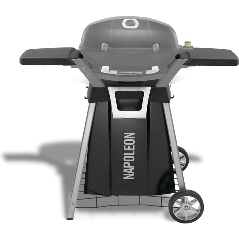 Solidny wózek przeznaczony dla modelu TravelQ™ PRO285 został zaprojektowany tak, aby idealnie komponować się z grillem. Podstawa PRO285-STAND zawiera tacę ze stali nierdzewnej na przyprawy, zintegrowany otwieracz do butelek, a nawet schowek na propan za stylowym frontem. Wytrzymałe, wyjmowane półki boczne zapewniają dodatkowe miejsce na akcesoria i ręczniki, co pozwala również na używanie i przechowywanie tego wózka w miejscach o ograniczonej przestrzeni.