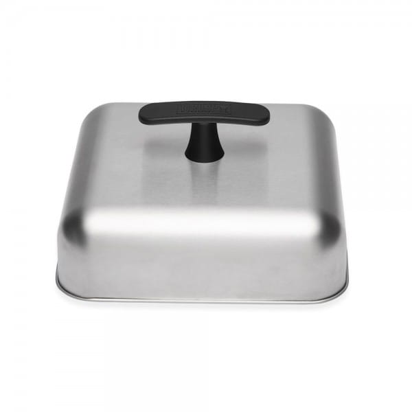 Pokrywa do smażenia marki Weber może pomieścić do 4 standardowych burgerów o wielkości 10 cm jednocześnie. Uchwyt w kształcie litery T ułatwia przenoszenie podczas grillowania, a wzmocniona krawędź zapewnia szczelne przyleganie, dzięki czemu ciepło nie wydostaje się ze środka na zewnątrz, co przyspiesza pieczenie. Pokrywa zapewnia optymalne wytapianie sera w panini lub burgerze, a także umożliwia gotowanie na parze ryżu, warzyw i innych produktów.