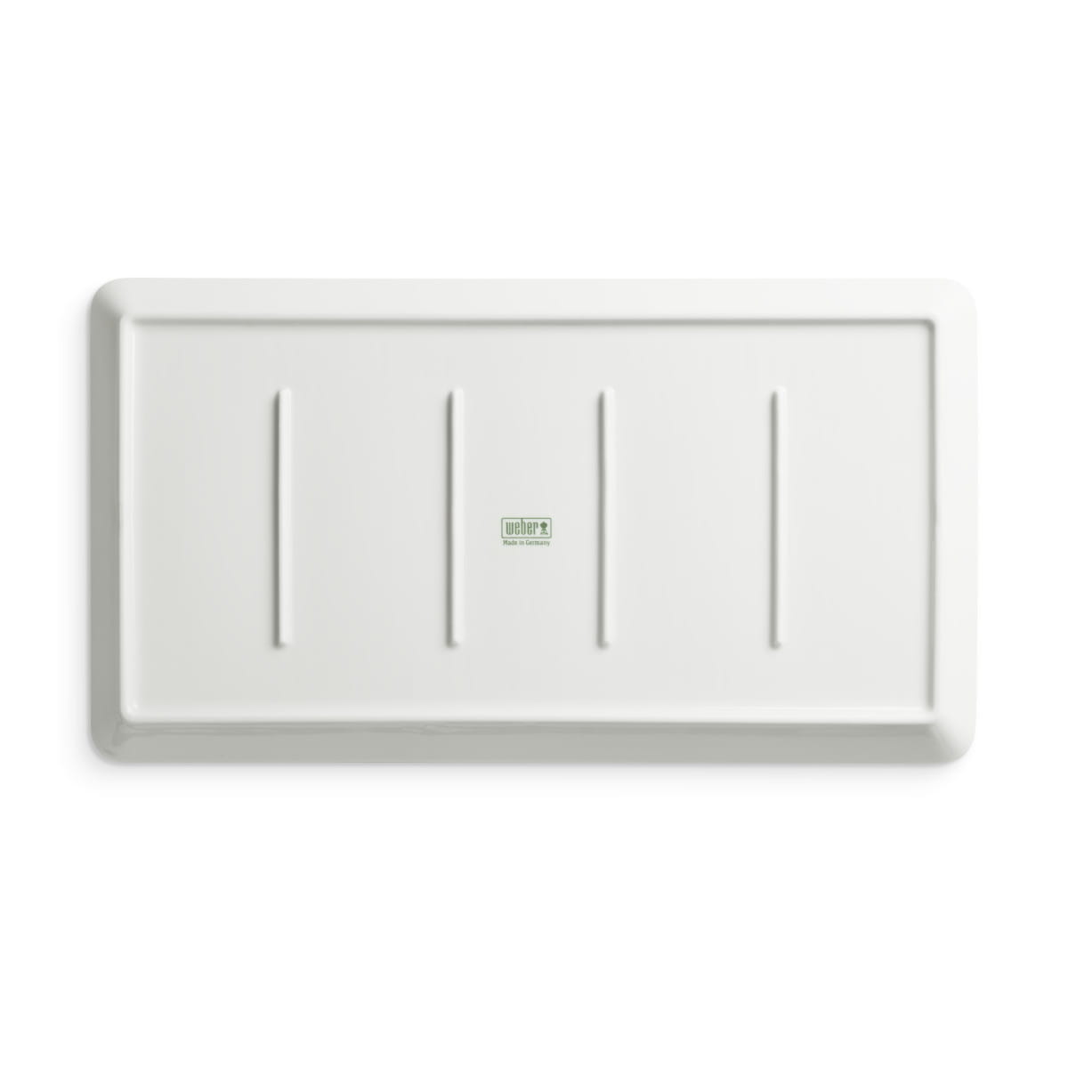 Porcelanowy prostokątny talerz marki Weber wykonany jest z niezwykle sprężystej porcelany o twardej strukturze, która jest odporna na zarysowania, dzięki czemu talerz pozostaje nieskazitelny od sezonu do sezonu grillowego. Gruby spód ponadto sprawia, że potrawa pozostaje dłużej ciepła.