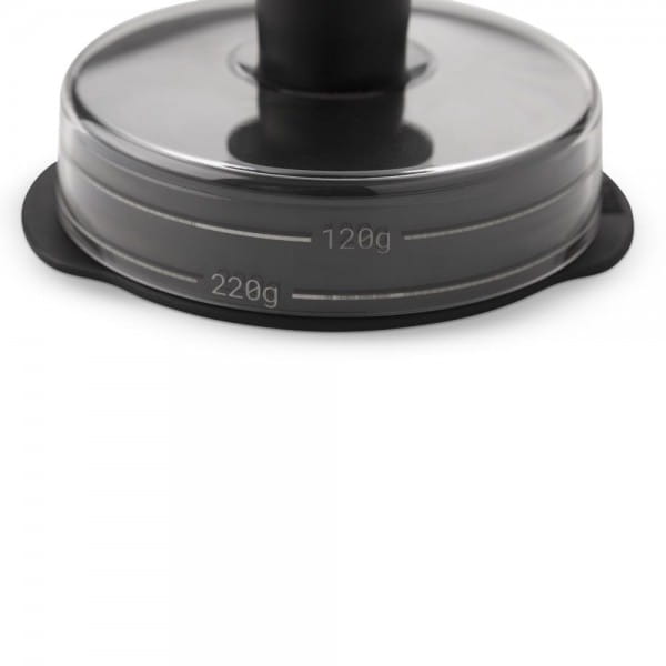 Prasa do burgerów marki Weber służy do wykonywania wgłębień w masie w celu uzyskania płaskich, równych burgerów. Dzięki niej łatwo można przygotowywać burgery o masie 120g i 220g. Prasa posiada uchwyt z nylonową rękojeścią, który jest zdejmowany dzięki czemu prasę z łatwością można przechowywać w każdym miejscu.