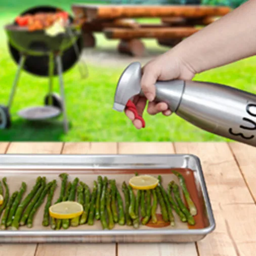 Rozpylacz Evo™ to wielofunkcyjny, niewymagający pompowania spryskiwacz. Wersja PRO zawiera 2 butelki o pojemności 946 mililitrów. 2 pozycje ustawienia dyszy zapewniają kontrolę nad strumieniem. Bardzo duża pojemność pozwala na długie korzystanie bez konieczności częstego dolewania płynu. Rozpylacz ułatwia proces konserwacji żeliwnych rusztów i doskonale nadaje się do nawilżania grillowanych potraw.