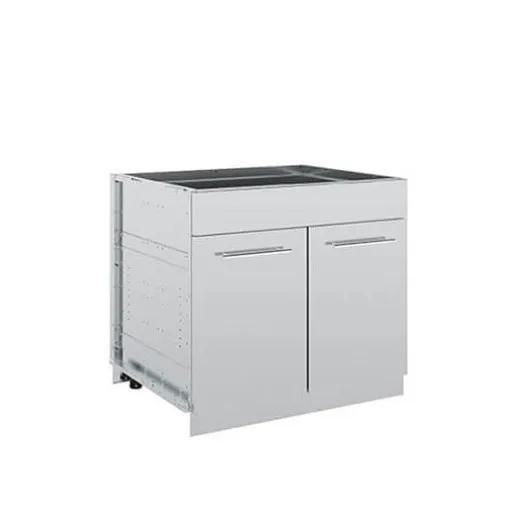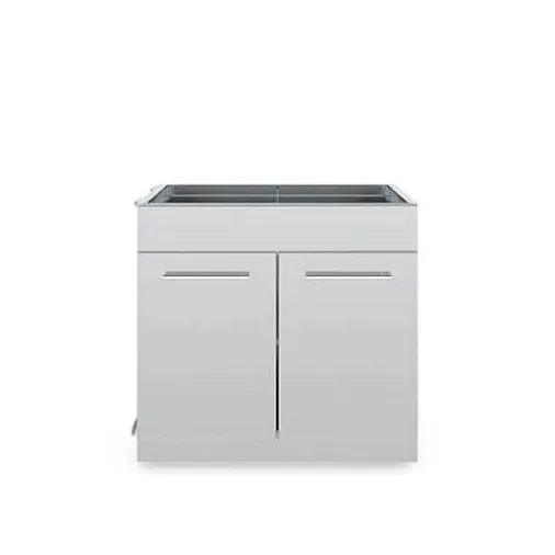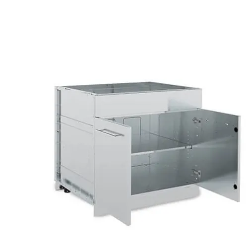 Szafka do zabudowy 2 drzwi/zlew marki Broil King wykonana została z wysokiej jakości stali szlachetnej, którą cechuje trwałość i odporność na warunki atmosferyczne. Dwudrzwiowa szafka z łatwością pomieści akcesoria, naczynia i przyprawy. Szafka posiada cztery regulowane nóżki zapewniające odpowiednie wypoziomowanie i stabilność oraz maskujący je cokół. Drzwi wyposażone zostały w uszczelki. Zastosowanie zawiasów z cichym domykiem gwarantuje bezgłośne i płynne otwieranie i zamykanie. Szafkę można zaadaptować pod zlewozmywak (brak w zestawie).