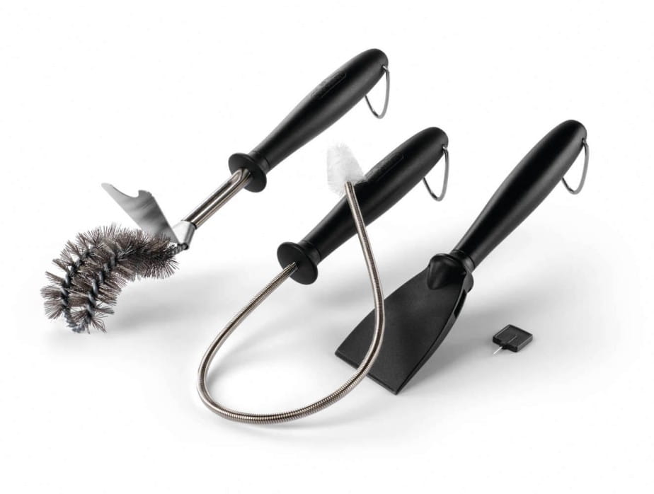 Gruntowne czyszczenie jest istotnym elementem sezonowej konserwacji grilla, a zestaw akcesoriów do czyszczenia grilla gazowego Napoleon ułatwi Ci to zadanie. Zestaw zawiera zagiętą szczotkę do czyszczenia rusztu ze skrobakiem, szczotkę do czyszczenia rurki Venturiego, skrobak do paleniska, który nie uszkodzi stali, oraz akcesorium do czyszczenia portu palnika, które jest przechowywane w skrobaku do paleniska.