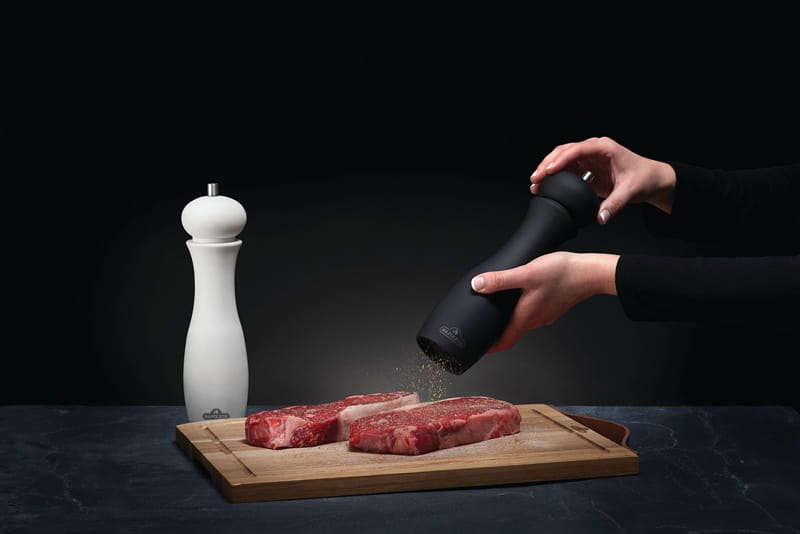 Duże stylowe młynki do soli i pieprzu dzięki którym dodasz aromatu potrawom. Regulacja pozwala na uzyskanie grubo lub drobno mielonych przypraw.